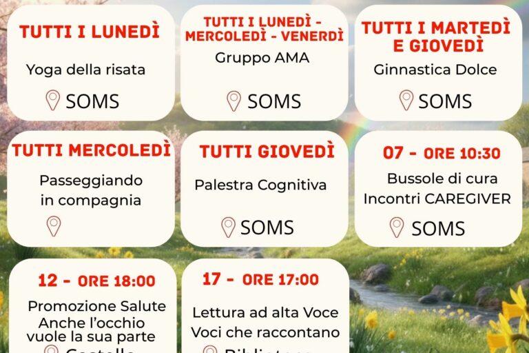 Un mese di marzo ricco di appuntamenti! 🗓️ Segnate le date sul calendario: salute, prevenzione, cultura e tanta compagnia. Il team SOMS è pronto ad accogliervi con entusiasmo! ❤️