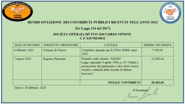 RENDICONTAZIONE DEI CONTRIBUTI PUBBLICI 2023