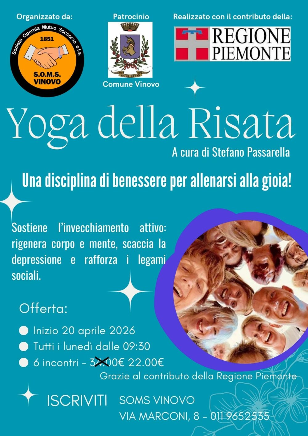 Buongiorno! Ripartono a Vinovo gli incontri di Yoga della Risata, un’attività splendida dedicata all’invecchiamento attivo. 🌸